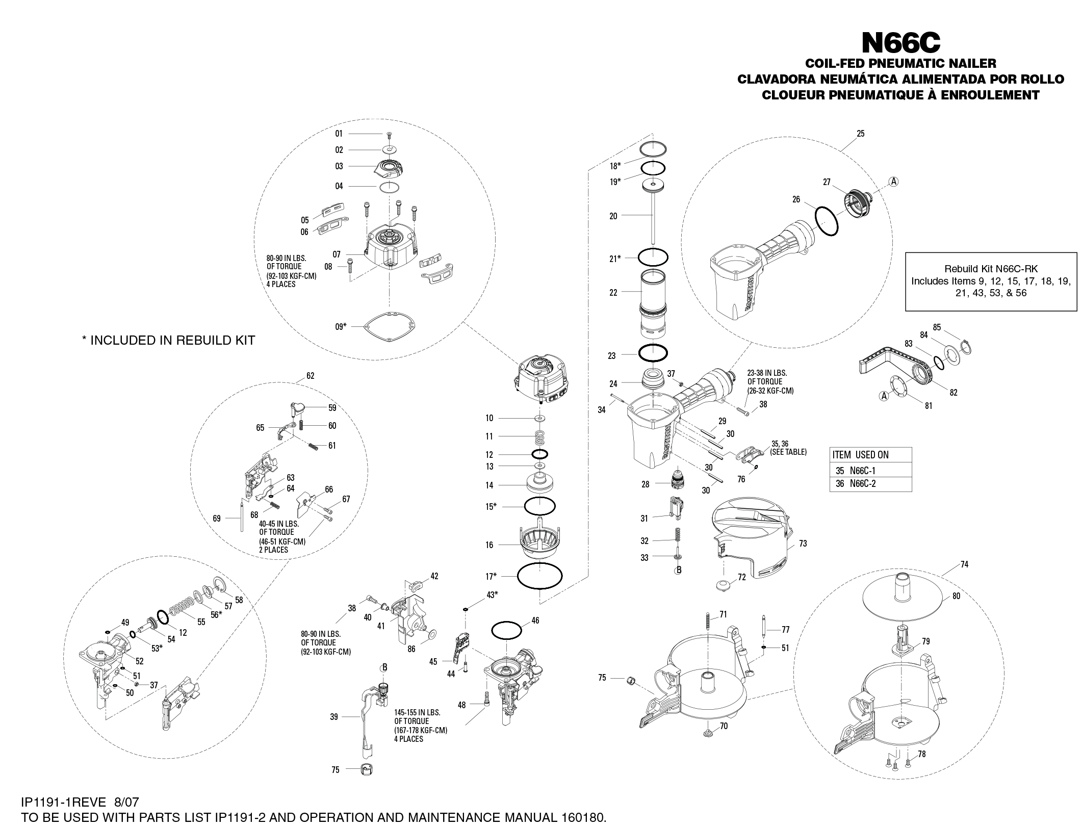 Buy Bostitch N66C-1 Type-072400000 Other tools in Bostitch Air Nailer category at lowest online prices - Find Bostitch N66C-1 Type-072400000 tool diagram schematic with complete list of. Nailer 174041 SCREWSFHCSM4X07X1 121 Add to Cart 174042 SPACEREXHAUST COVER 121 Add to. Buy Bostitch N66C-1 Type-62860000 Other tools in Bostitch Air Nailer category at lowest online prices - Find Bostitch N66C-1 Type-62860000 tool diagram schematic with complete list of.